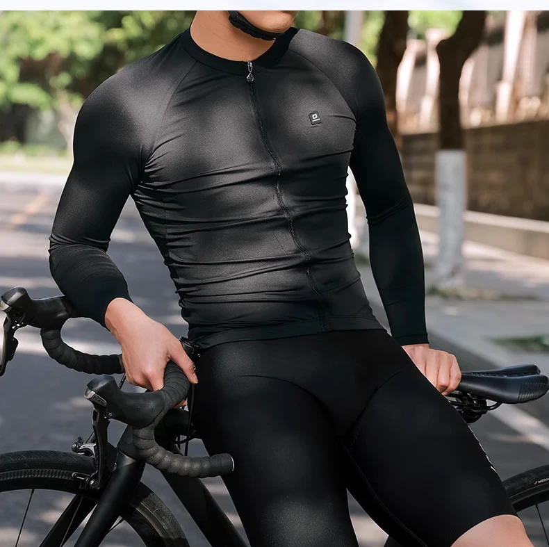 Performance-focused men’s long sleeve cycling jersey designed for comfort and breathability during rides. Made from polyester and spandex blend fabric to provide stretch, quick-dry performance, and moisture control.