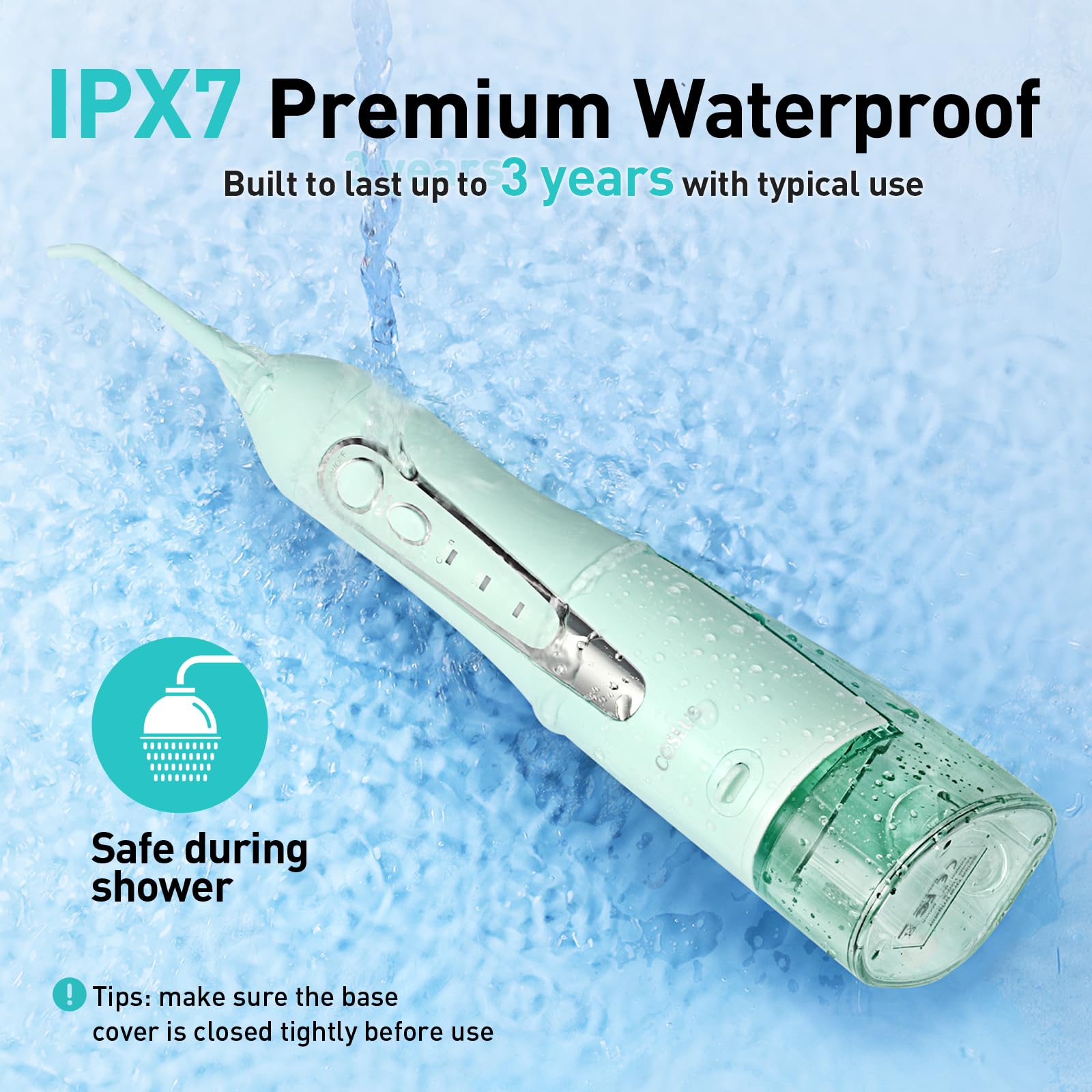 IPX7 Waterproof and 3-Year Durability: Our wireless water dental pick boasts superior waterproofing, allowing easy cleaning and safe use during showers. Its upgraded motor delivers a more effective dual-stream water flow and is built to last for 3 years under typical use
