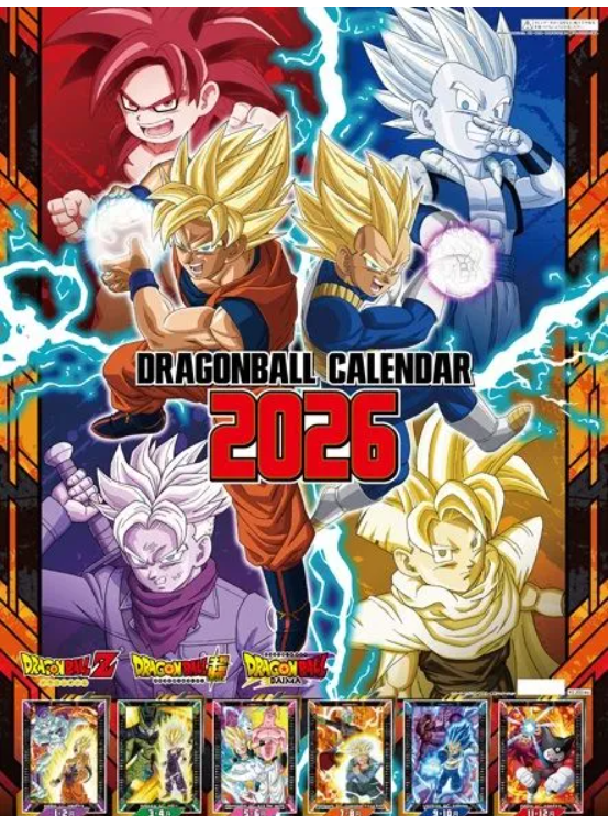 드래곤볼 시리즈의 대표 일러스트로 구성된 2026년 공식 캘린더로, 월마다 다른 캐릭터와 장면을 감상할 수 있습니다.