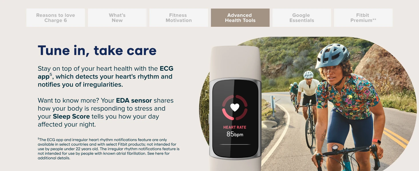Fitbit Charge 6 Smart Fitness Tracker with ECG,Heart Rate,SpO2,GPS,Sleep Stress Monitor, Waterproof Watch for Running & Swimming