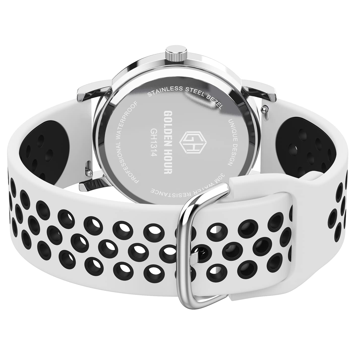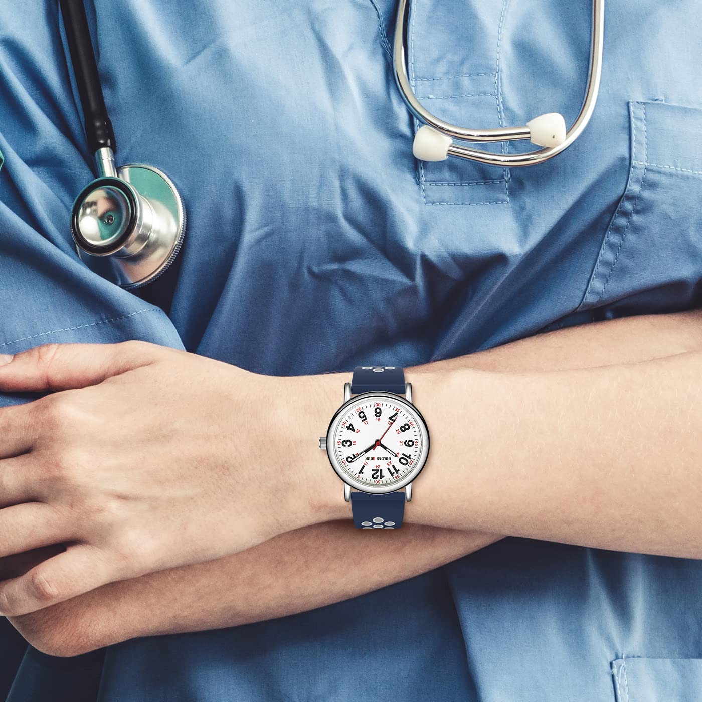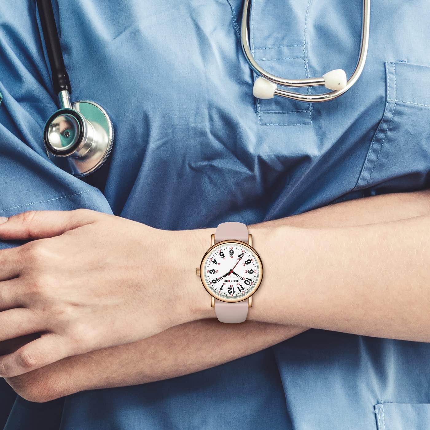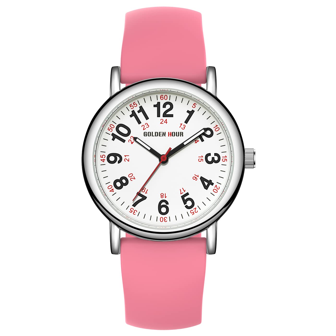 GOLDEN HOUR 방수 간호사 시계는 의료 종사자와 학생을 위해 설계된 아날로그 메디컬 워치입니다. 화이트 다이얼에 12시간 및 24시간(밀리터리 타임) 표기가 함께 적용되어 근무 중 빠르고 정확하게 시간을 확인할 수 있습니다.