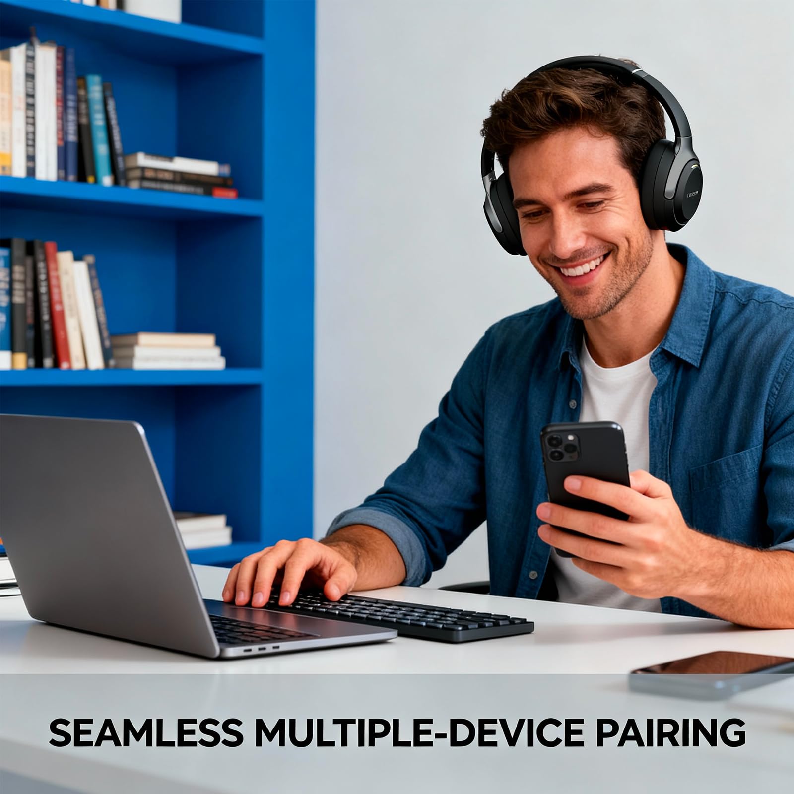 CLOUD-SOFT COMFORT AND FOLDABLE DESIGN Ultra-soft protein leather earcups with memory foam provide all-day comfort. Adjustable headband and 90-degree swivel foldable design make it ideal for travel and commuting.